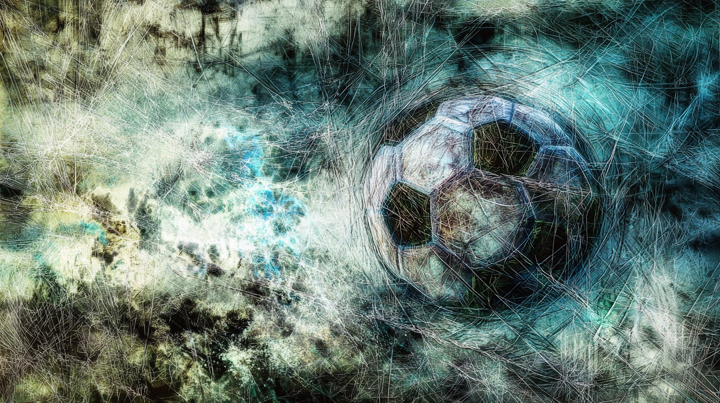 Midjourney Prompt: abstract texture electronic artificial soundscape singularity entropy cosmic density electric synapses creative abyss experimental post minimal painting soccer ball --s 10 --ar 16:9